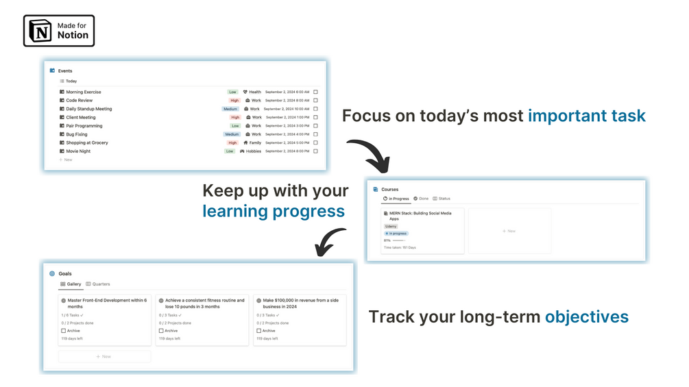 - Goal Tracker to stay aligned with long-term objectives
