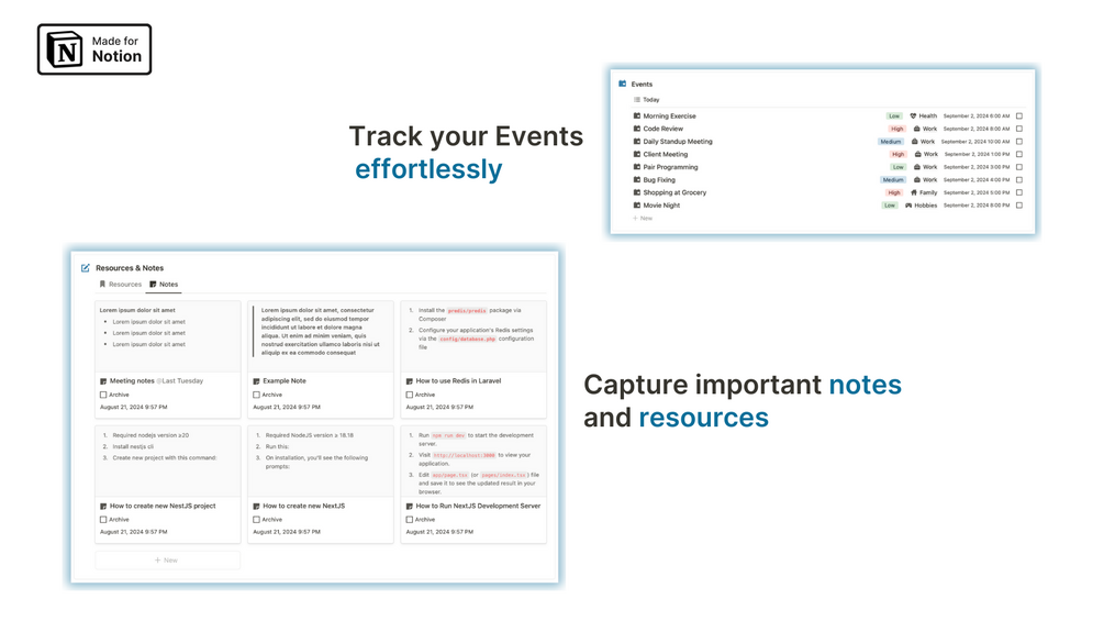 - Notes Dashboard for quick and easy note-taking